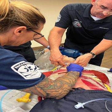 Bodyotomy manufactures various models for paramedics to practice CPR, intubation, cricothyroidotomy, intraosseous vascular access, peripheral intravenous cannulation, fracture stabilization, etc.