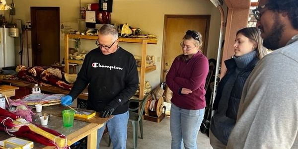 He is presented here teaching manufacturing techniques to a few interested students.